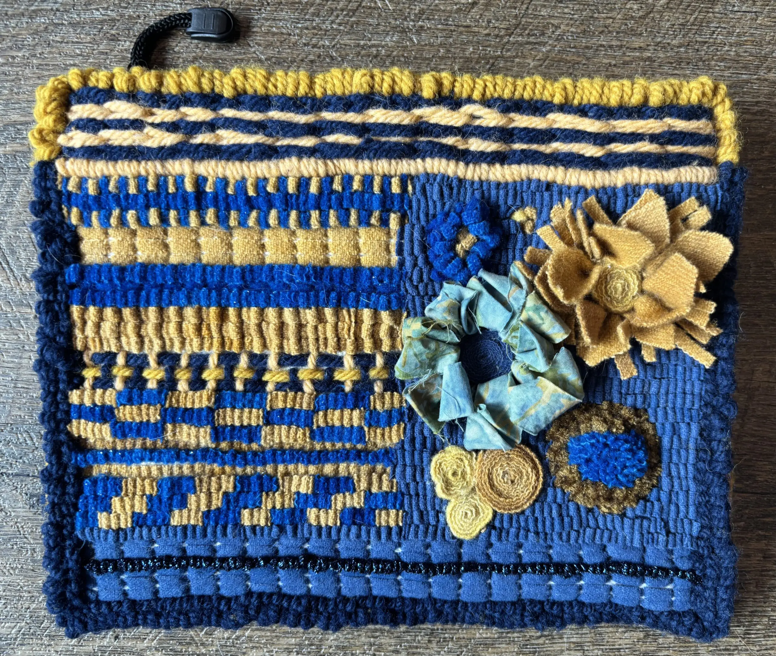 Design, hook or punch, (or combination), and assemble a 9×5 zippered case, after completing a sampler of creative stitches. Only sewing required is hand stitching the zippered pouch inside your hooked piece.